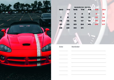 Calendar Template created in Affinity Publisher. Two file formats Affinity Publisher and .PDF So it can be printed by a printer. If you want to change the format from cars to another theme, All you have to do is delete the pictures and insert your own to create what ever theme you want.